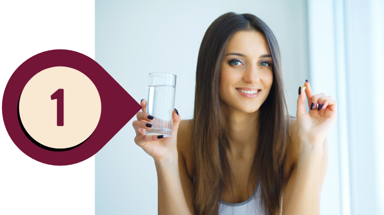 Passo 1: Recomendamos 2 cápsular ao dia, copo com água ou bebida da sua preferência