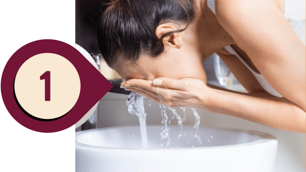 Limpe a Pele: Lave o rosto e o pescoço com um sabonete facial adequado e seque suavemente.